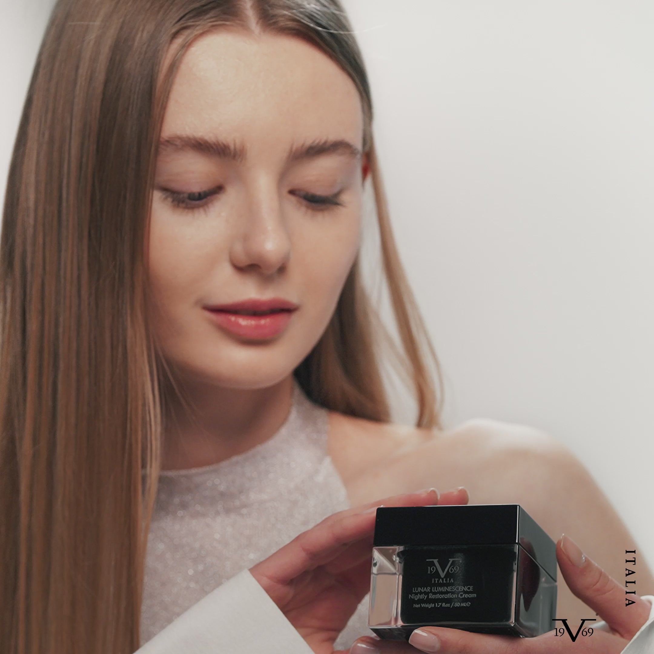 v1969 ITALIA Lunar Luminescence Nightly Restoration Cream, by Versace 19.69 Abbigliamento Sportivo SRL, is suitable for all skin types. This thick and luxurious formula is full of hyaluronic acid and vitamins to help restore the skin to a radiant and luminous appearance while you sleep.